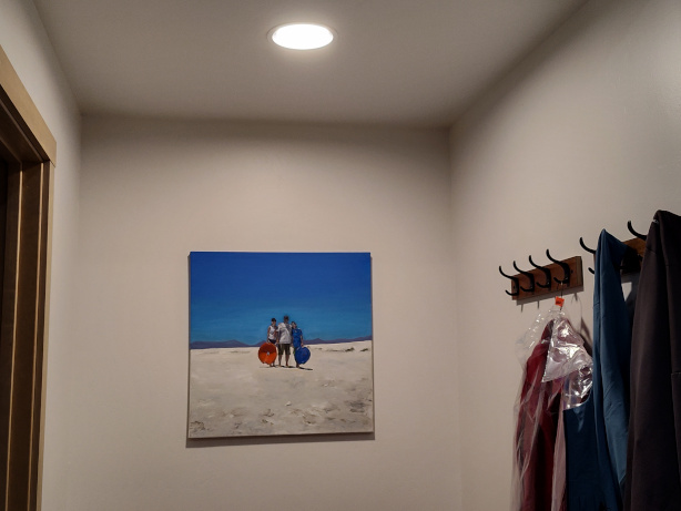 | The composition of this family photo taken by Karen, my long time UNM friend, in White Sands, NM in May, 2016, inspired me to recreate it in oils. It hangs in the heart of their home where it “brings back good memories of that day”, every day. (click image to open new window detail) |